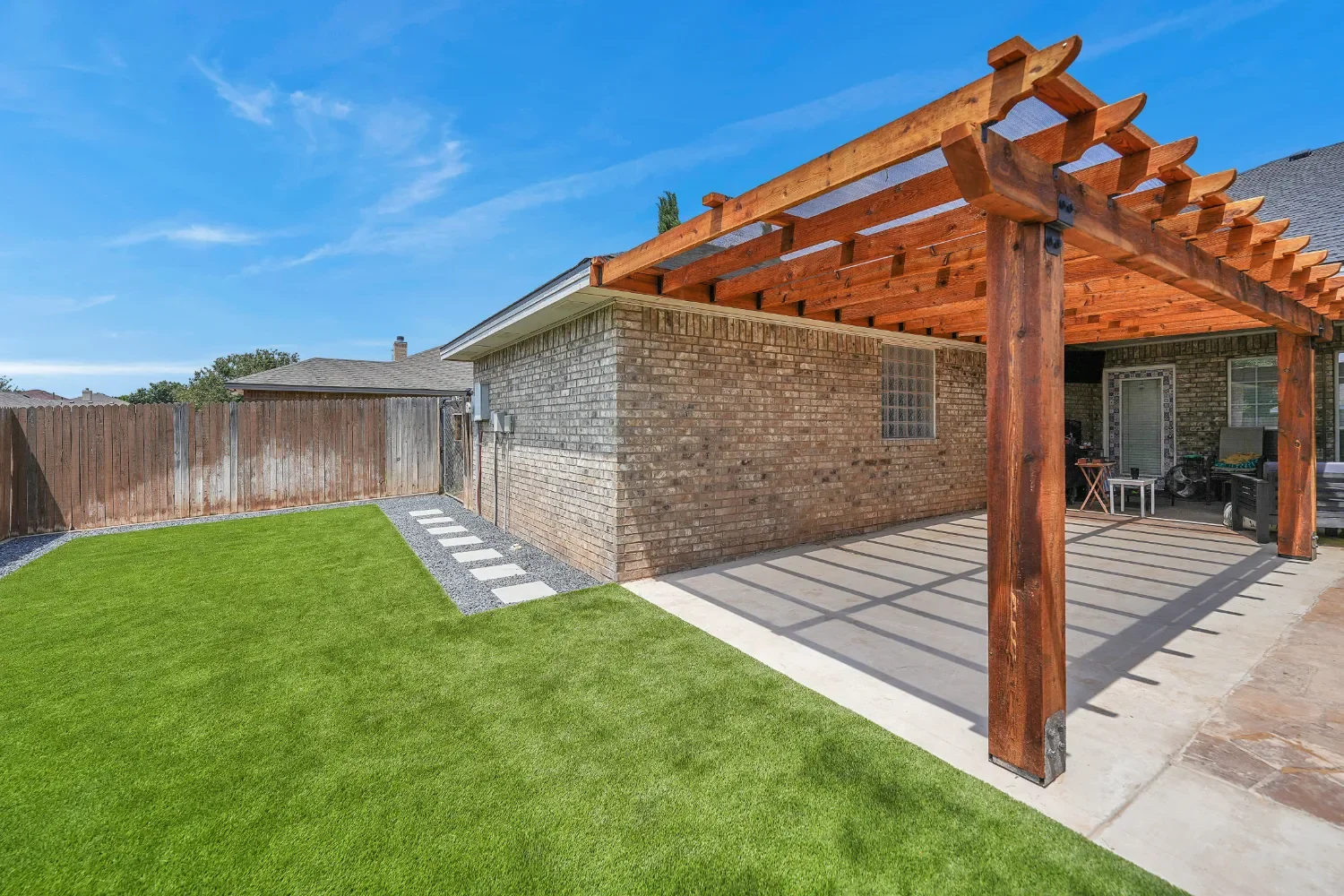 In West Texas, shade isn't optional. Without it, patios sit empty by mid-morning and outdoor kitchens go unused when you'd actually want to cook outside. WTX Outdoor Living designs and builds pergolas and shade structures that solve that problem: placed correctly, built to handle wind and sun, and tied into the rest of your yard.