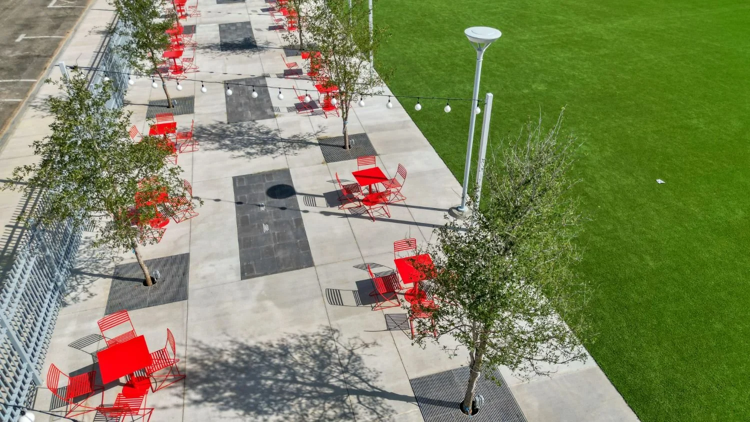 Shade structures placed to improve comfort in high-use areas
